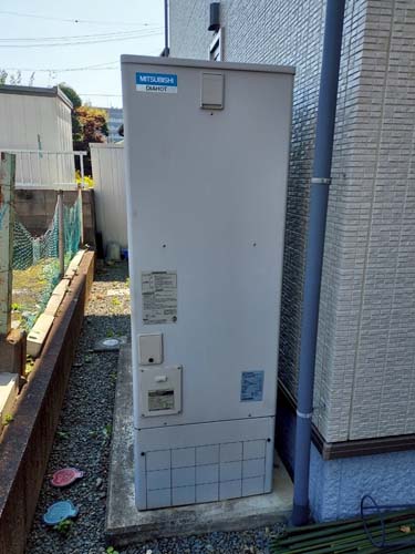 柏市柏 三菱電機自然冷媒CO2ヒートポンプ給湯機 貯湯タンクユニットSRT-HPTK37W5→パナソニック家庭用ヒートポンプ給湯機 ヒートポンプユニットHE-PLS45L エコキュート交換工事