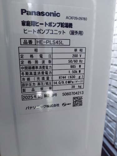 柏市柏 パナソニック家庭用ヒートポンプ給湯機 ヒートポンプユニットHE-PLS45L エコキュート交換工事