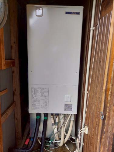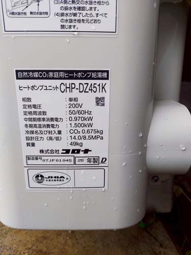 千葉市中央区 コロナ自然冷媒CO2家庭用ヒートポンプ給湯機 ヒートポンプユニットCHP-DZ451K エコキュート交換工事