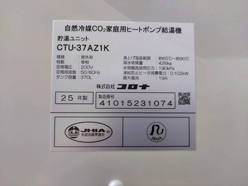 柏市旭町 パナソニックヒートポンプ給湯機ヒートポンプユニット(屋外用)HE-PL45D→コロナ自然冷媒CO2家庭用ヒートポンプ給湯機ヒートポンプユニットCHP-DZ451K、貯湯ユニットCTU-37AZ1K エコキュート交換工事